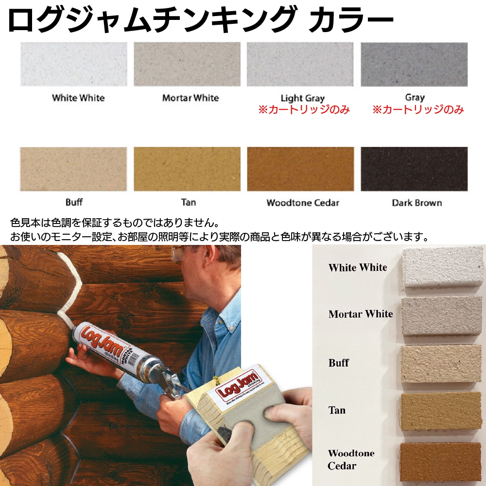 ログハウスのチンキングに使用します。 ※本製品の使用に際しては、雨に曝される垂直面(壁)には適していますが、水が溜まるようなプール・浴室には適しません。 また、過剰に荷重がかかる場所、車庫・路面・パティオなどの床にも適しません。 また雪などが長時期積もるような場所はログジャムの接着力を維持するために定期的な雪掃除をお勧めします。 |