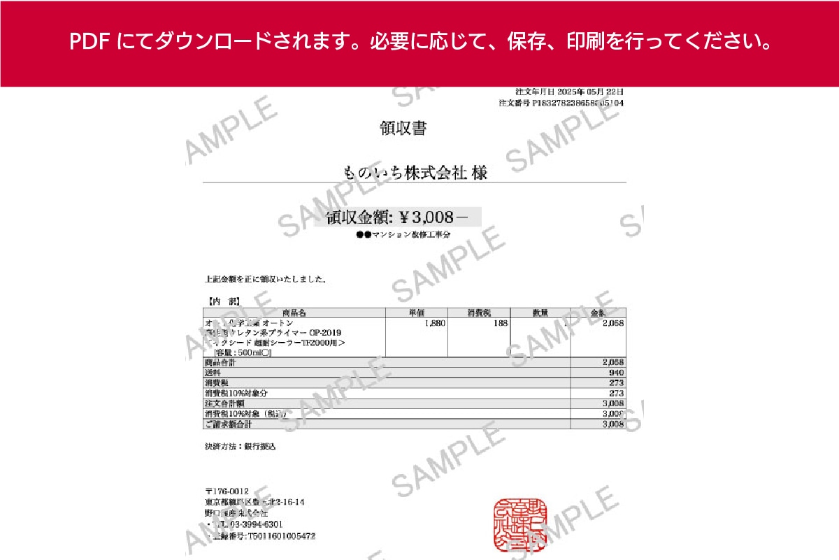 - 領収書はPDF形式で発行されます。商品への同梱は行っておりません。
