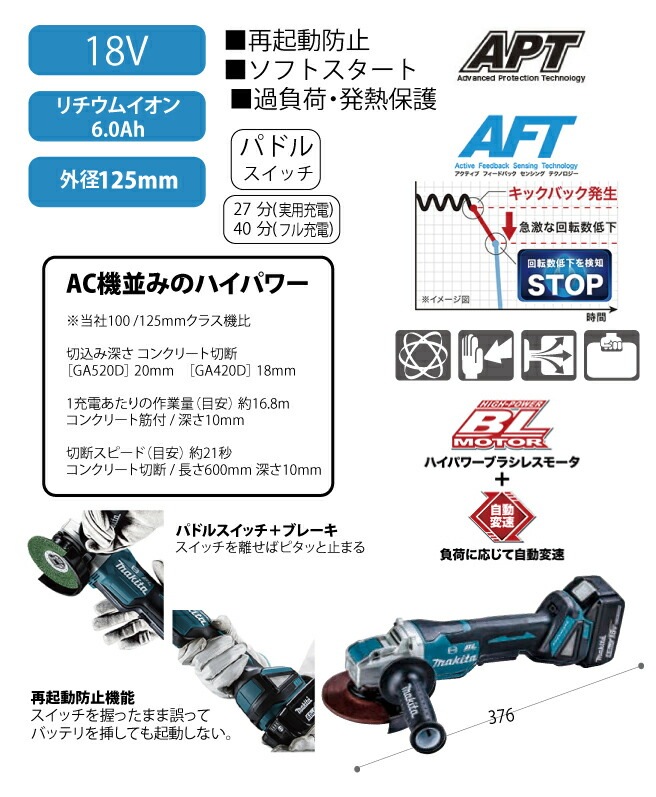 | 商品名 | 充電式ディスクグラインダ GA520DRGX |