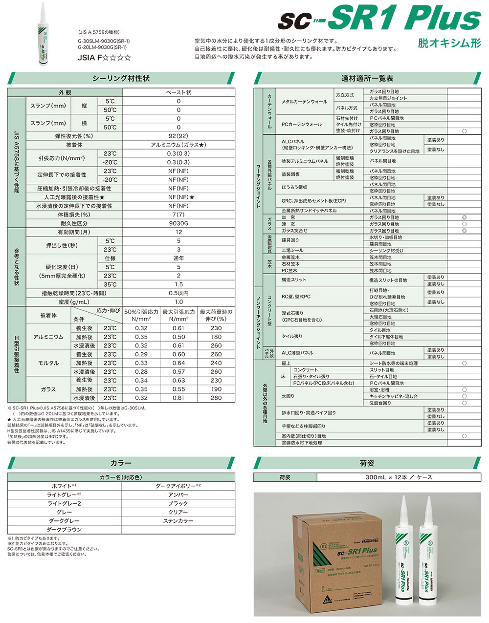 | キーワード | シーカ・ジャパン ハマタイト SC-SR1 PLUS 1成分形シリコーン系シーリング材 脱オキシム形 自己接着性 耐候性 耐久性 防カビタイプ ガラス回り 目地 浴室 キッチン 洗面所回り |