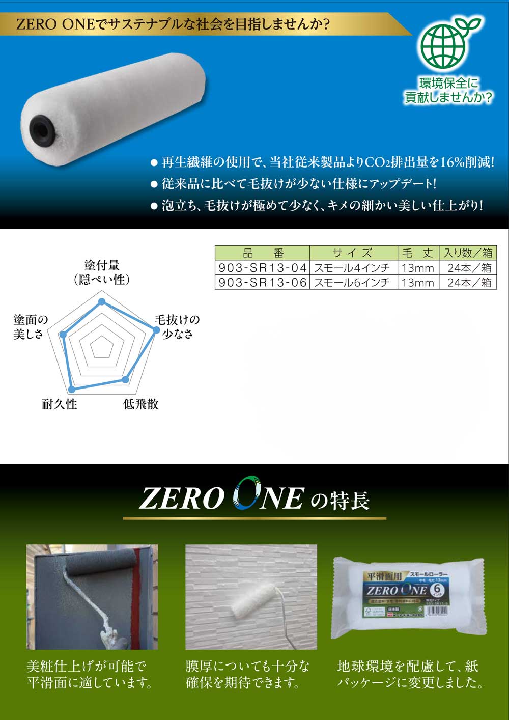 | キーワード | PIA ピーアイエー ローラー ZERO ONE ゼロワン 再生繊維 抜けが少ない サステナブル 美粧仕上げ 平滑面 |
