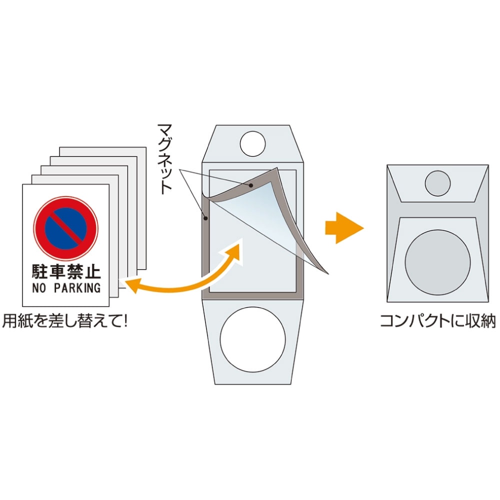 重量コーンにも使用可能な規格統一タイプ。 A3用紙にデザインされたものを差し込むだけで思いのままにサインを表示できます。 マグネット式の開閉で用紙の差替えも簡単。雨水浸入の心配もありません。 |