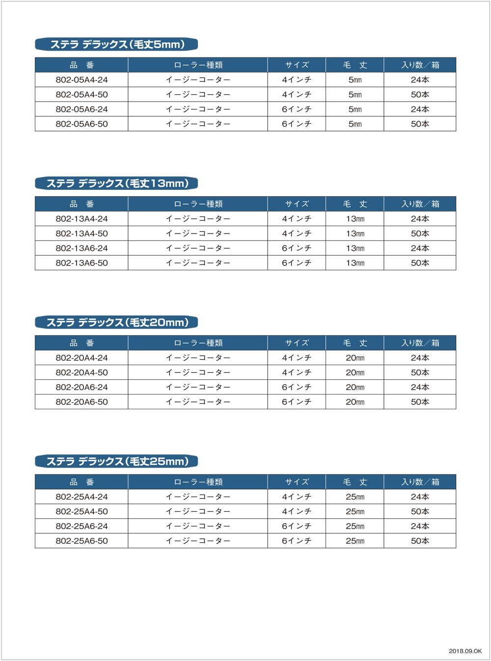 ・5mm 内装・木部塗装用 ・13mm 内外装・木部塗装用 ・20mm 外装・木部塗装用 ・25mm 外装・木部塗装用 |