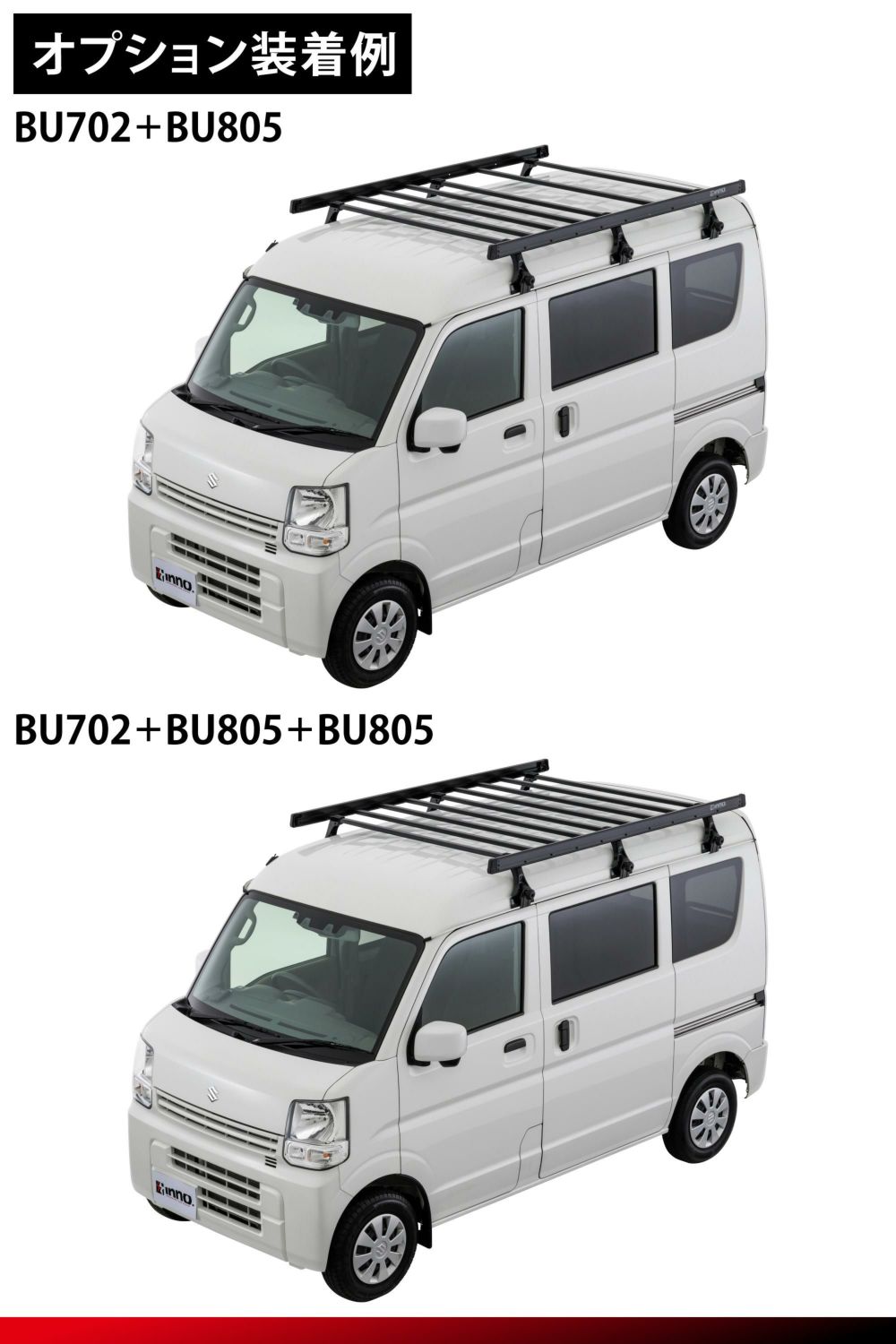 ●荷物を安定して積載 本品を追加することで底面のバー間隔を狭くし、小さい荷物などを安定して積載することができます。 コンテナボックスなどの箱物を積載するのに最適です。 バー間隔:標準状態360mm→オプション使用時180mm ●荷物に優しく積載できる高強度なバー INNOスクエアバーを採用しています。 樹脂被膜仕様のため、積載物に傷がつきにくいです。 ※お求めになる前に 本品はBU702専用です。 |