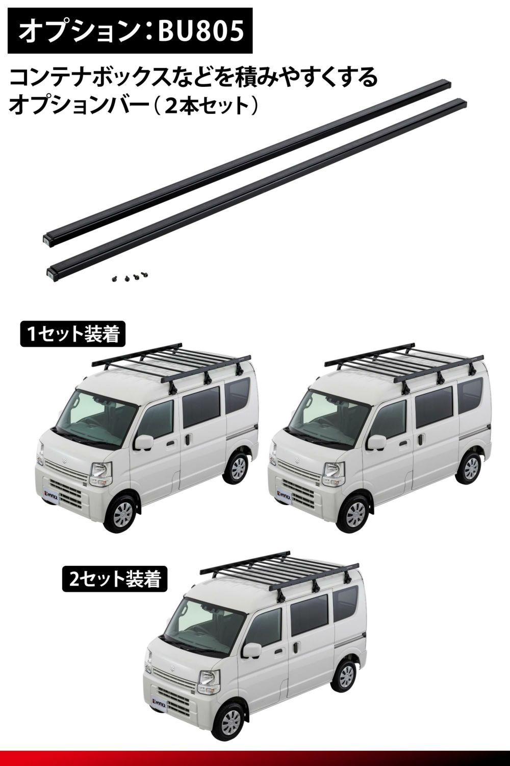 | キーワード | カーメイト ローダウンラック エブリイ ハイゼット BU702用オプションバー用 BU805 高強度 バー INNO 樹脂被膜仕様 ブラック |