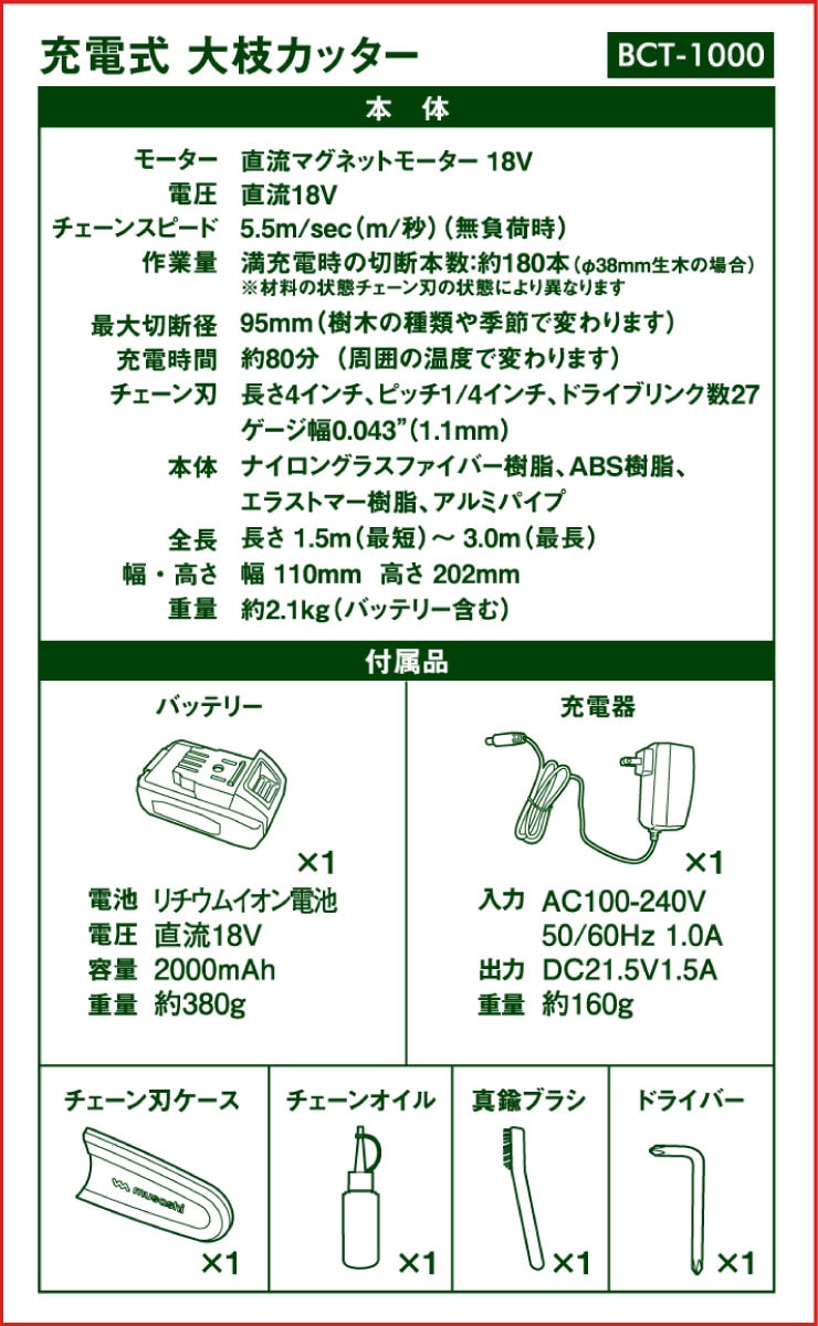 | 商品名 | 充電式大枝カッター BCT-1000 |
